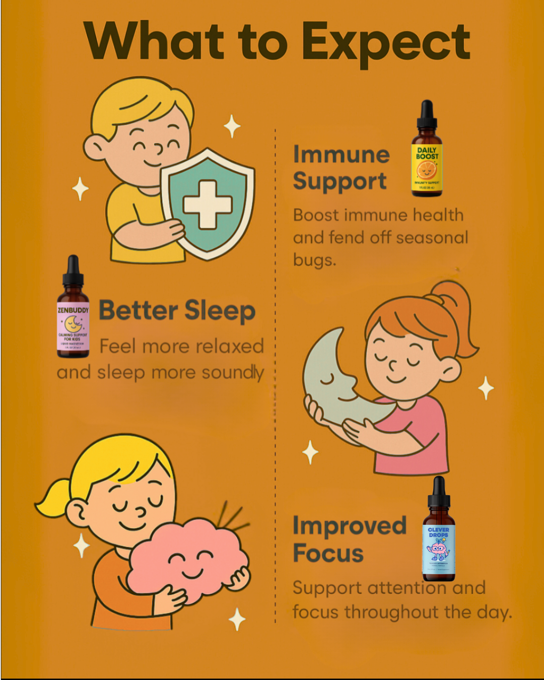This 3-in-1 system is designed to gently support your child’s immunity, sleep, and focus - without sugar, artificial additives, or power struggles.